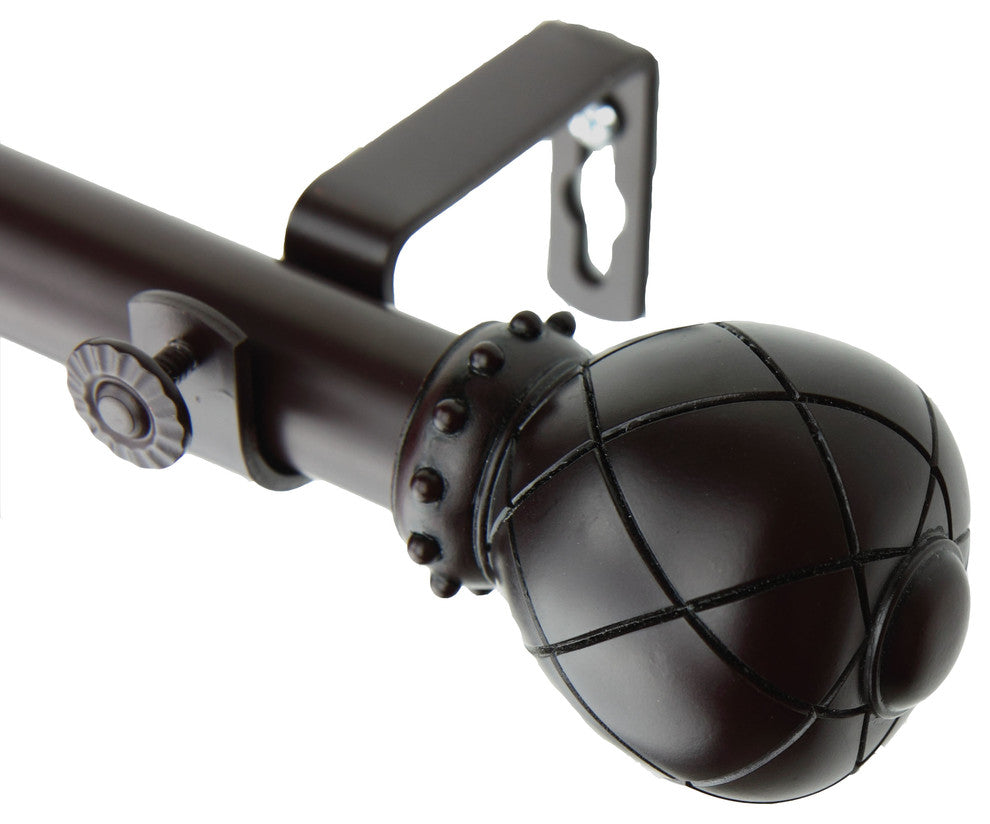 Decorate your window with this Rod Desyne Supreme Curtain Rod. This rod is made of solid steel pole while lends a sophiscated touch and finished appeal to your window treatment, regardless of room or drapery style. Features:Includes one 1 inch diameter high quality steel telescoping pole, extends 28-48 inch, 2 brackets and 2 finialsEach Supreme finial measures W 2-5/8 inches x H 2-1/4 inches x D 2-1/4 inchesProjection: 3.625"