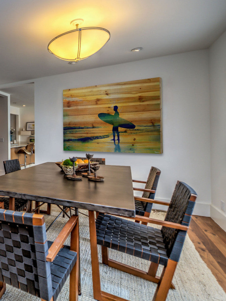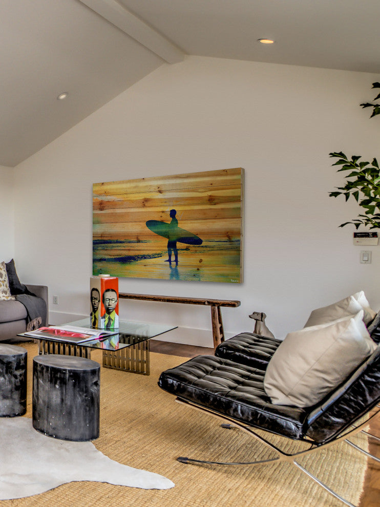 "Surf at Dusk" Print on Natural Pine Wood, 60"x40"