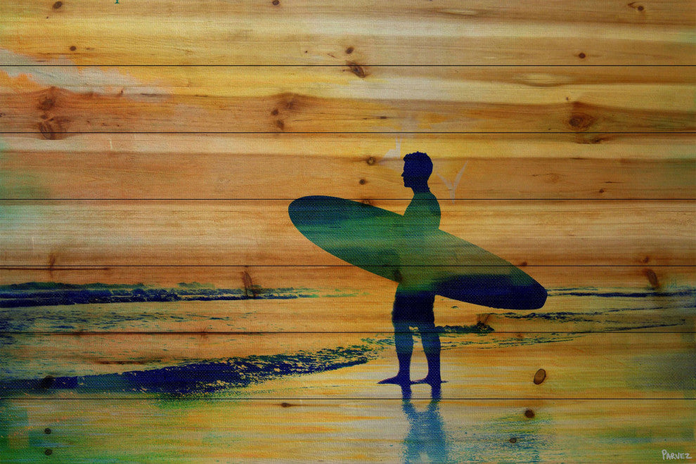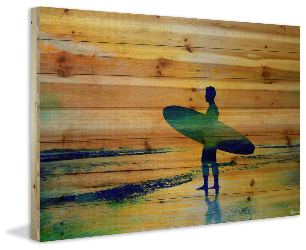 Striking and unique, the "Surf at Dusk" Print on Natural Pine Wood by Parvez Taj will bring your walls to life. Printed on natural pine wood, this 60 inch wide by 40 inch tall contemporary artwork will make a statement in any living room, dining room, or bedroom.- Fine art print on natural pine by Parvez Taj- wood pieces are hand-selected by Fine craftsmen for printing- Arrives ready to hang- Includes a certificate of authenticity- Artist signature on the front