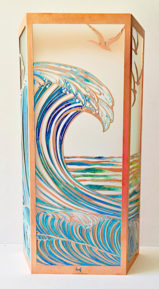 He''e Nalu means big wave in Hawaiian. The Surf Sconce is made in Hawaii by artist Leighton Lam. A lifelong surfer, Leighton''s original artwork for this sconce is inspired by his many surf adventures. The sconce is made of solid copper with Japanese high-strength etched glass. The patina finish is hand painted with a green verdigris (patina) detailing. All lighting comes with a lamp holder and cover. Paradise Lights come complete, ready for easy installation. They can be used as interior or exterior wall mounted fixtures, all you need is an electrical line to connect with in your wall, on existing homes would be any wall mounted light, on a new construction be sure your architect / electrician plan for a power line to the area you want your lights. The lamp holder will take a standard bulb 40-120 watts.