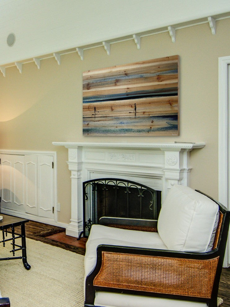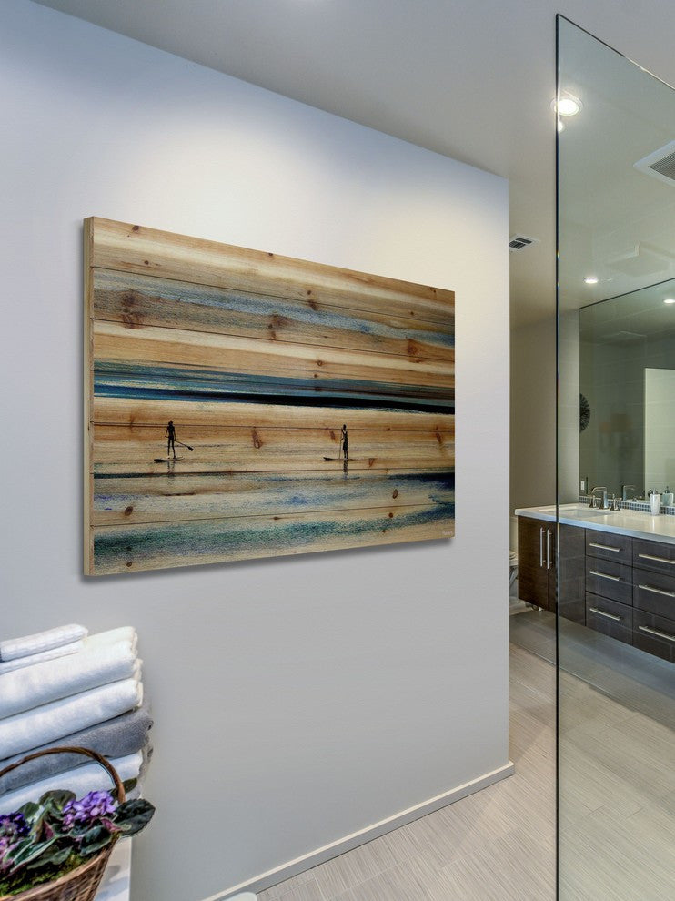 "Surfboard Paddling" Print on Natural Pine Wood, 60"x40"