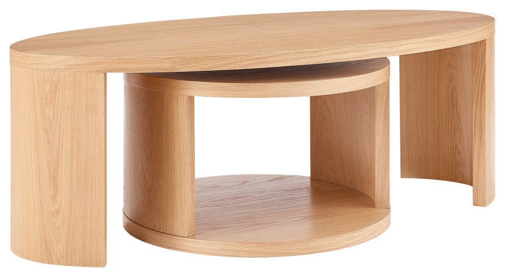 The nesting design allows for versatile arrangements, with the smaller table tucking effortlessly under the larger one when not in use, providing both style and functionality. Perfect for compact spaces or as a stylish centerpiece, these tables embody simplicity, durability, and timeless appeal in a scandinavian-inspired design.