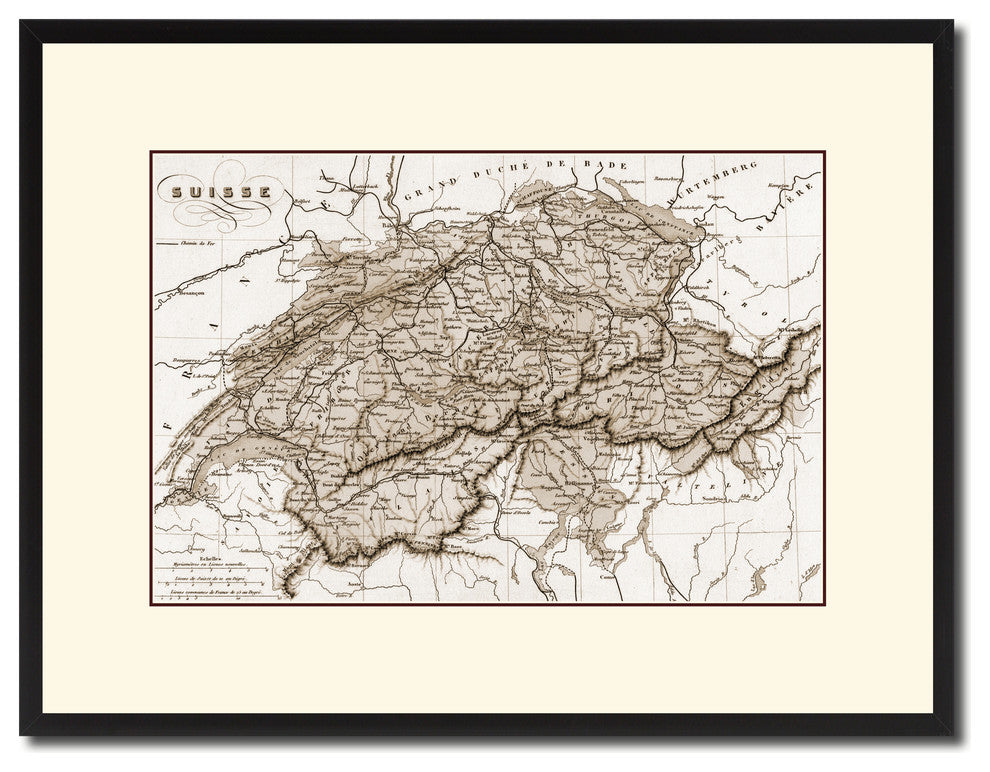 Switzerland Vintage Sepia Map Canvas Print, 16"x21"