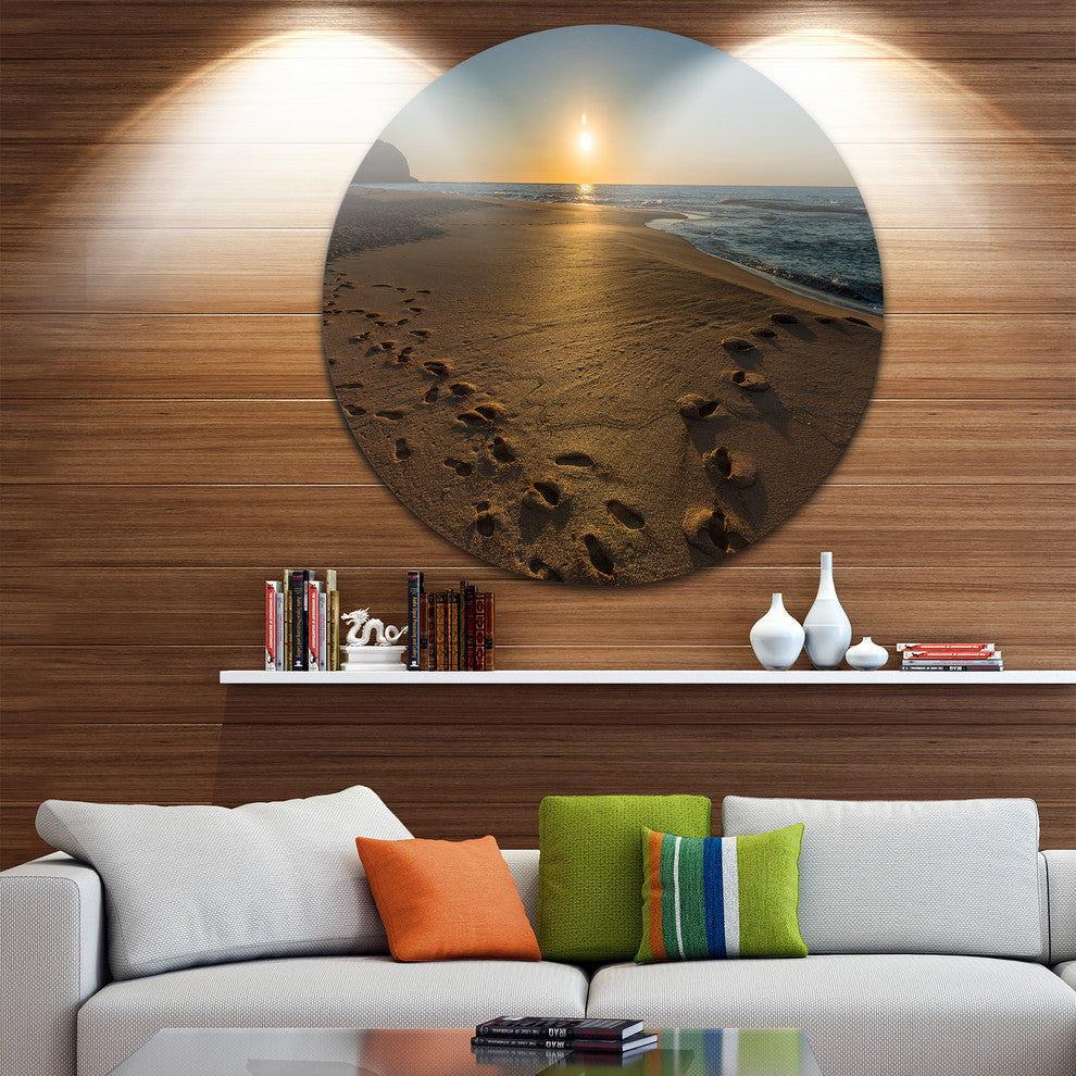 Bring Contemporary Abstraction to your home with this large Circle Metal wall art. This Sydney Seashore at Sunrise Metal Artwork makes it the focal point of any room or office.
