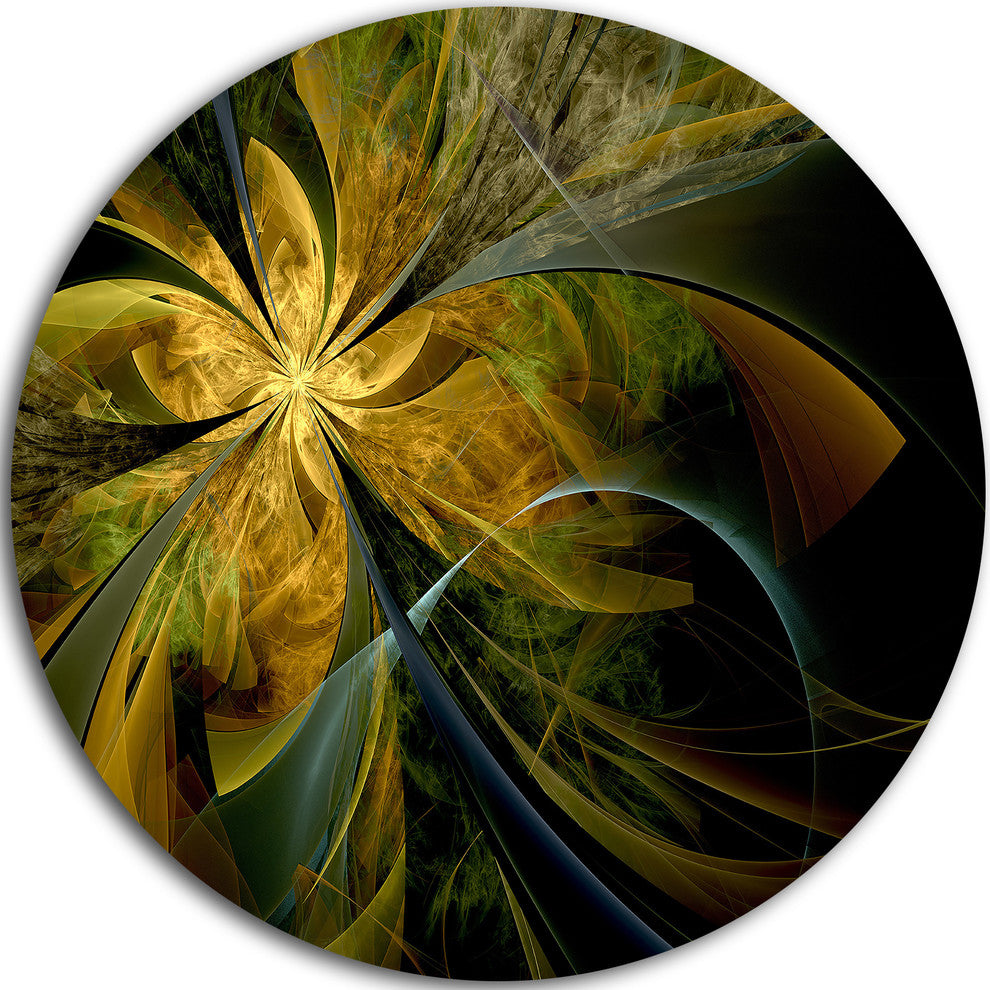 Bring Contemporary Abstraction to your home with this large Circle Metal wall art. This Symmetrical Fractal Flower in Gold Metal Artwork makes it the focal point of any room or office.