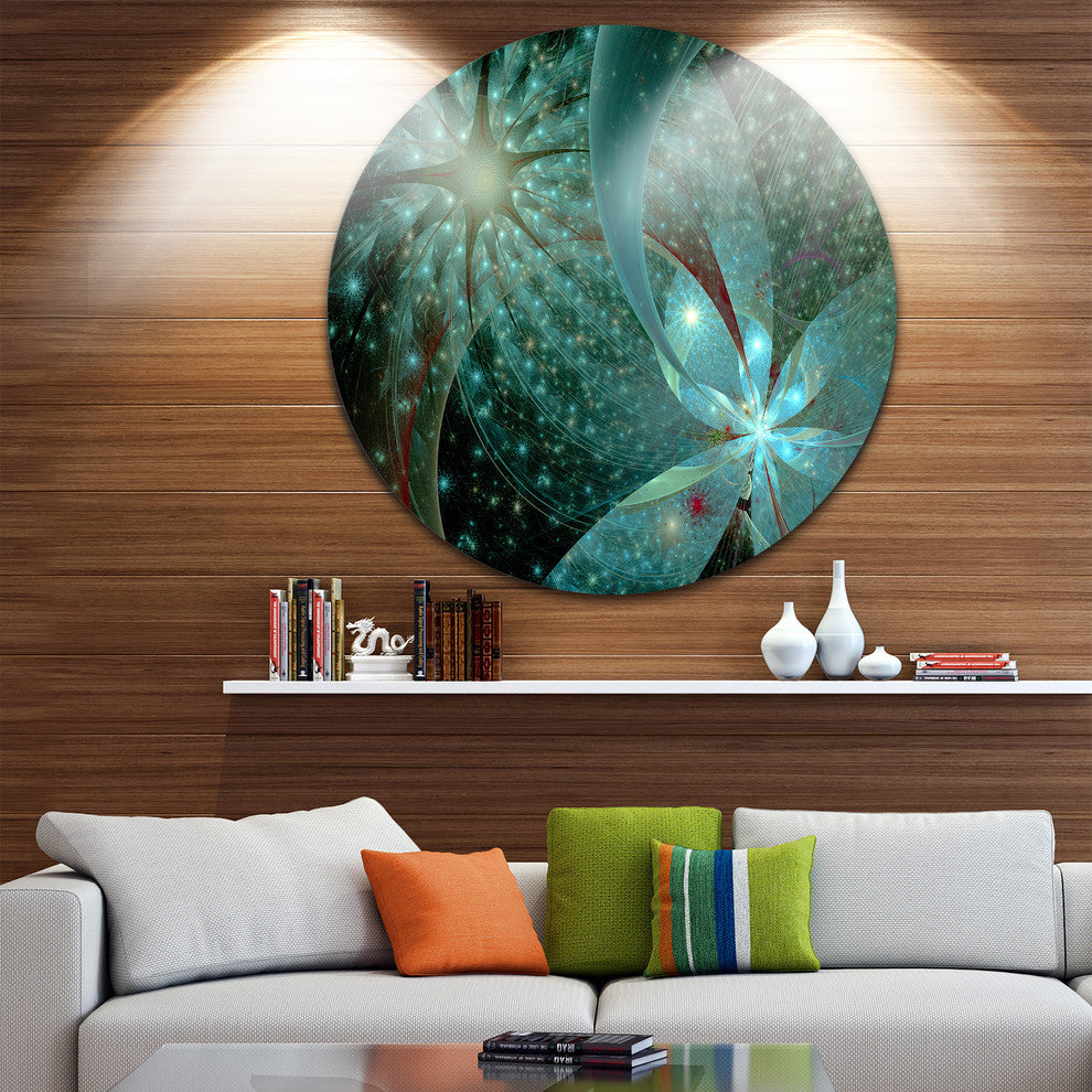 Bring Contemporary Abstraction to your home with this large Circle Metal wall art. This Symmetrical Fractal Flower in Light Blue Metal Artwork makes it the focal point of any room or office.