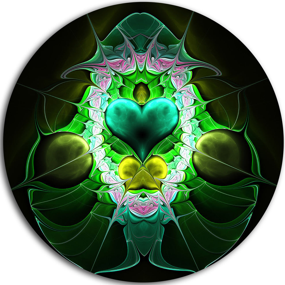 Symmetrical Fractal Heart Green, Abstract Round Wall Art, 23"