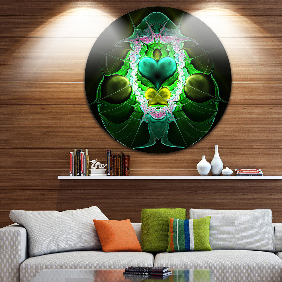 Bring Contemporary Abstraction to your home with this large Circle Metal wall art. This Large Symmetrical Fractal Heart Green Metal Artwork makes it the focal point of any room or office.