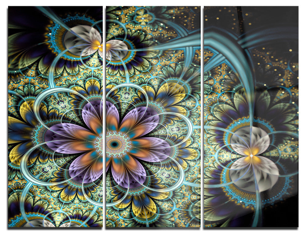 "Symmetrical Green Fractal Flower" Digital Metal Wall Art, 3 Panels, 36"x28"