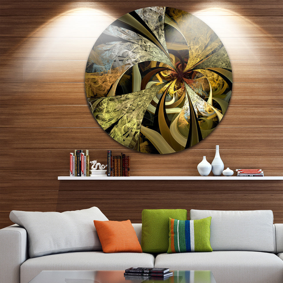 Bring Contemporary Abstraction to your home with this large Circle Metal wall art. This Symmetrical White Golden Fractal Flower Metal Artwork makes it the focal point of any room or office.