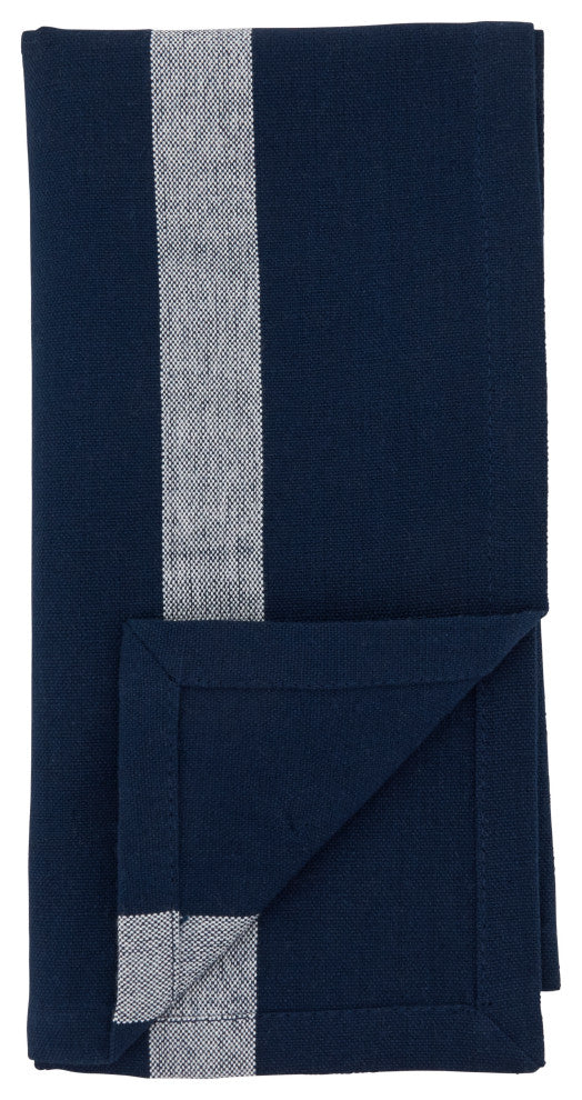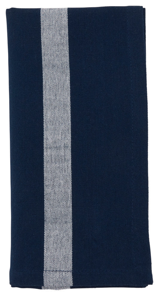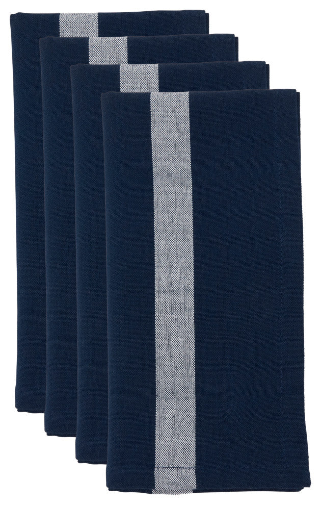 Table Napkins With Banded Design, Set of 4, Navy Blue