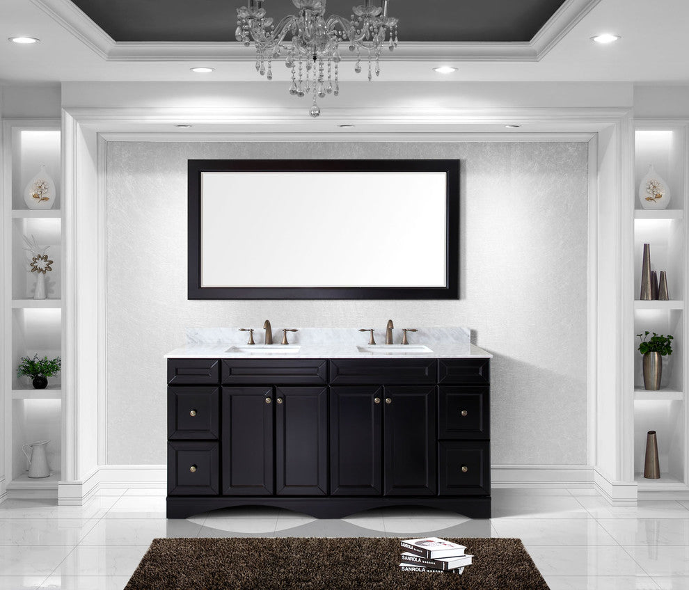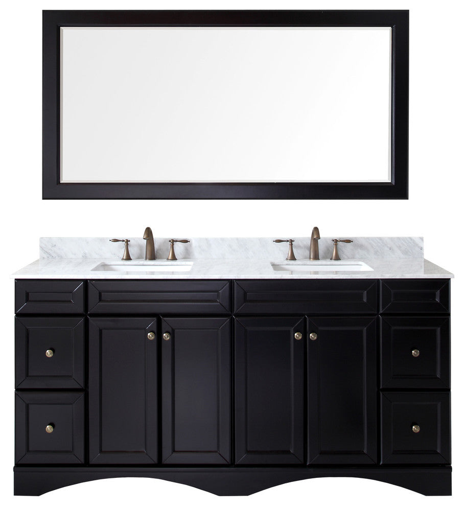 Talisa 72" Double Bathroom Vanity Set, Espresso With Mirror, Square Basin
