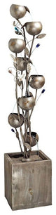Sculptural and stylish, we''ve never come across a statement fountain quite like this before! Boasting engineered hand-crafted and aged metal, natural glass cabochon accents and sweet water music, the Abstract Floral Cascading Fountain is sure to be the crowning statement in your home or on your patio. Eight cascading streams of water flow endlessly from each stylized metal flower basin to create an oasis with a peaceful, meditative atmosphere. At nearly 6 feet tall, the Abstract Floral Tower is one of the largest metal fountains we''ve ever offered. This investment in fountain art features an integrated, UL-listed, indoor/outdoor pump. Bring inside during freezing temperatures. 14"Wx14"Dx69"H. 29 lbs.