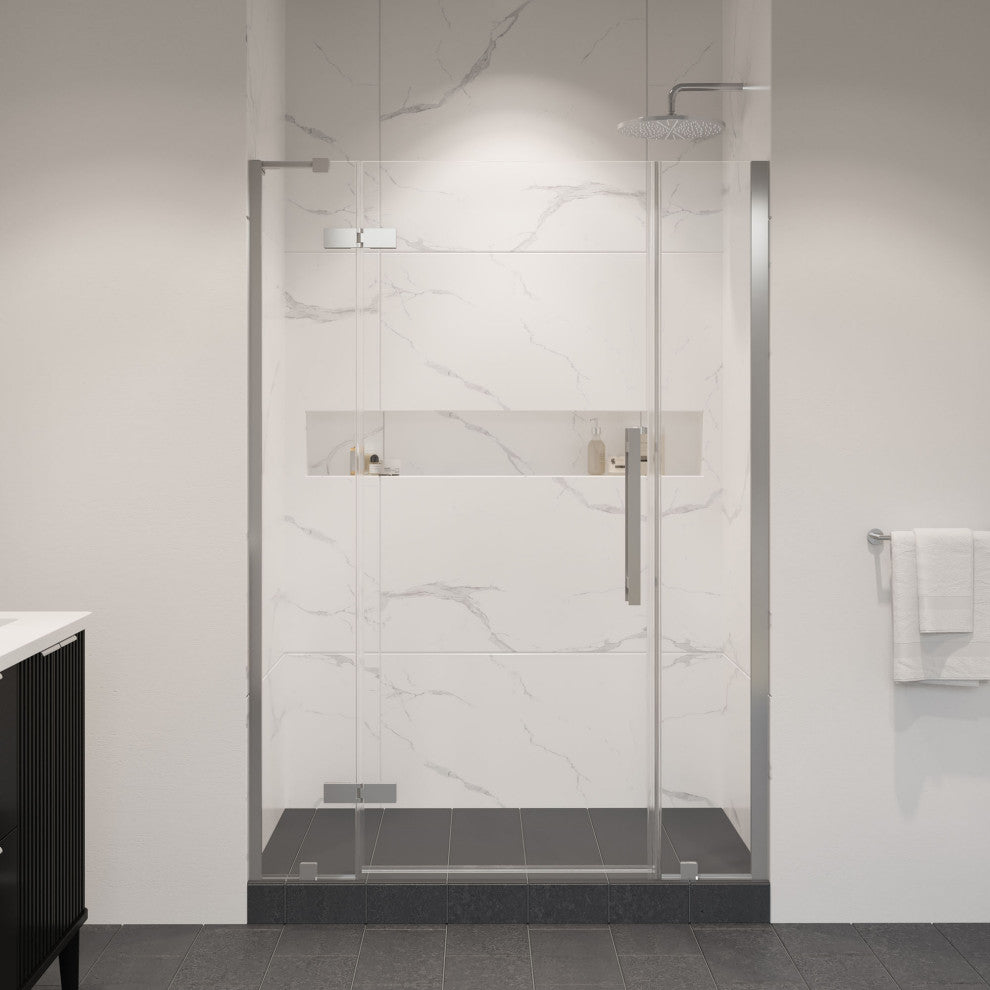 Tampa frameless hinge shower door: 51 11/16 to 54 1/16 in. Width x 11/16 in. Depth x 72 in. Height