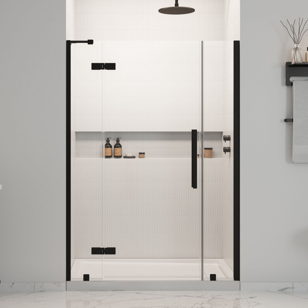 Tampa Alcove Frameless Pivot Hinge Shower Door Kit With Base Pan, Black, 54x32"