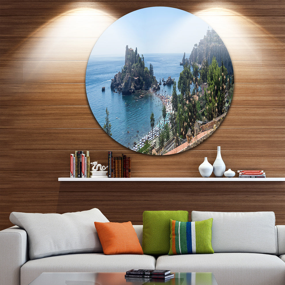 Taormina Island Panoramic View, Landscape Photo Round Wall Art, 38"