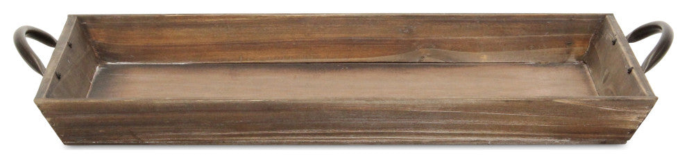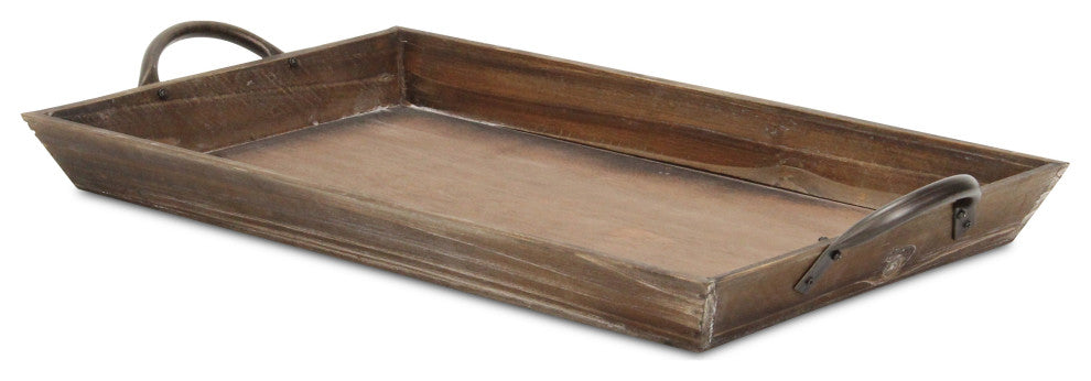 Add a touch of farmhouse charm to your home with the Tapered Wooden Serving Tray. A sophisticated space to serve breakfast in bed or bring cocktails to your guests, the Tapered Wooden Serving Tray is simple in design, yet versatile in function. Featuring metal side handles and a tapered rectangular shape, the Tapered Wooden Serving Tray includes a gorgeous, weathered wood finish. Stylish and functional, the Tapered Wooden Serving Tray makes a lovely addition to any space of your home.