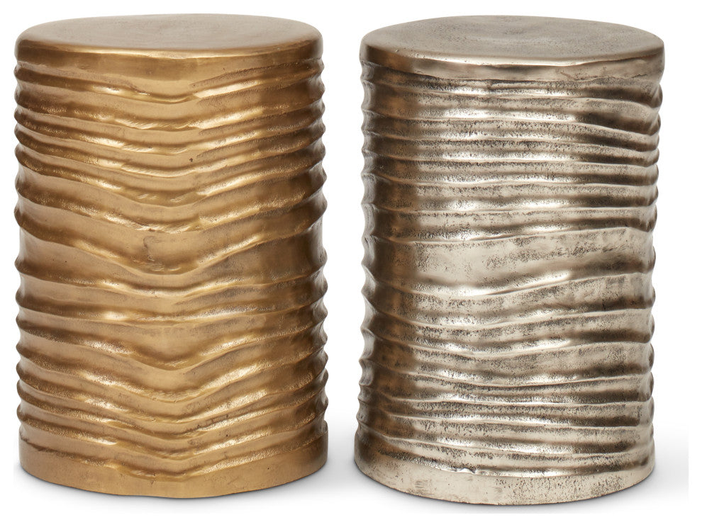 Crafted from reclaimed aluminum, the Tara Stool combines sustainability with contemporary design. Sitting 18" high, this piece provides versatility to a space - acting as a pedestal, decor piece or extra seating. Tara is available in multiple metallic tones. / Sculptural design / Made from reclaimed aluminum / Each piece is handcrafted and unique / Color/Finish: N/A / Materials: Reclaimed Aluminum / Top Color/Finish: N/A / Top Material: N/A / Table Shape: N/A / Table Top Thickness: N/A / Base/Leg Color/Finish: N/A / Base/Leg Material: N/A / Weight Capacity: 250 lbs