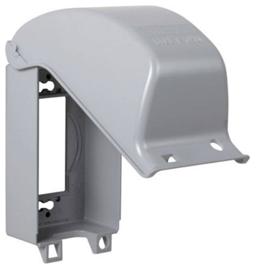 Designed for use whenever weatherproof protection is required while an outlet is in use. Heavy duty die-cast metal construction. Patented Quick-Fit™ keyhole mounting system allows installation in under a minute. Pre-configured for GFCI with patented Knockout technology for alternate devices. Includes attached gasket and mounting hardware.• Extra Duty®• Vertical 8-in-1• Single Gang• Premium Powder Coat• Designed for use whenever weatherproof protection is required while an outlet is in use• Heavy duty die-cast metal construction• Patented Quick-Fit™ keyhole mounting system allows installation in under a minute• Pre-configured for GFCI with patented Knockout technology for alternate devices• Includes attached gasket and mounting hardware• Lockable tab• UL Listed, 2011 NEC Compliant, Article 406.8(B) (1), NEMA 3R Compliant.