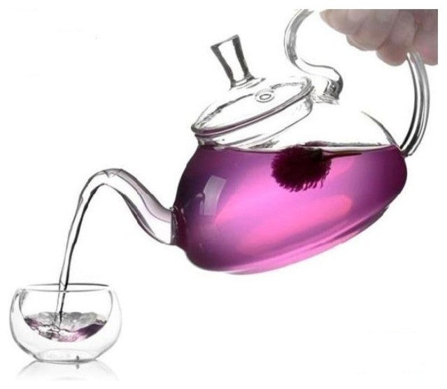 From Teaology comes an incredible new line of tea accessories that make a bold statement. Made of durable, heat resistant, mouth-blown borosilicate glass of the finest quality, the Infuso is the perfect tea brewing set. Our design is popular with flower blossom tea such as chrysanthemum blooming tea. Borosilicate glass is stronger than common glass. It is shatter-resistant and resitant to high heat. It is the same glass used in making beakers, test tubes and other chemistry equipment. Avoid the aftertaste and flavor you get from plastic and metal kettles. This set comes with a beautiful all-glass teapot, kettle warmer base with tea light and a set of 6 Luna Teacups. The teapot is perfect for pouring hot water or make your own blooming tea. It can be used on gas, electric, and coil type stovetops. It is lead free glass. It comes with a match borosilicate glass warmer base with metal plate insert and a starter tea light. The double-walled design of each Luna glass insulates drinks at their ideal temperature and suspends drinks with a unique floating effect. The glass is condensation free and does not get hot to the touch when filled with hot beverages. This set includes 6 of these Luna glasses.The glassware is dishwasher, microwave (excluding metal plate) and freezer safe. Teapot measures 8" wide with handle and spout x 5.25" and 5.25" tall. 600ml/20oz volume. Each glass measures 2.5" wide and 1.5" tall and has a volume of 50ml.