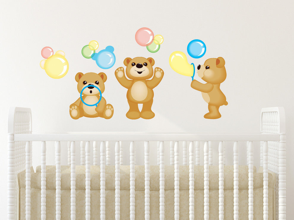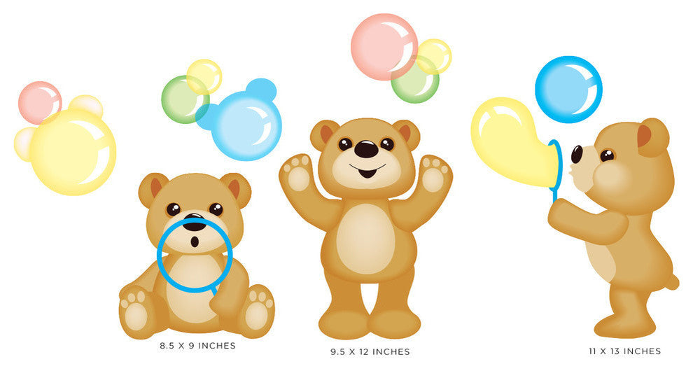 These adorable fabric decals come in a set of 3 teddy bears blowing bubbles (bubble decals are included). The decals are made from a high quality fabric material that is reusable and repositionable.