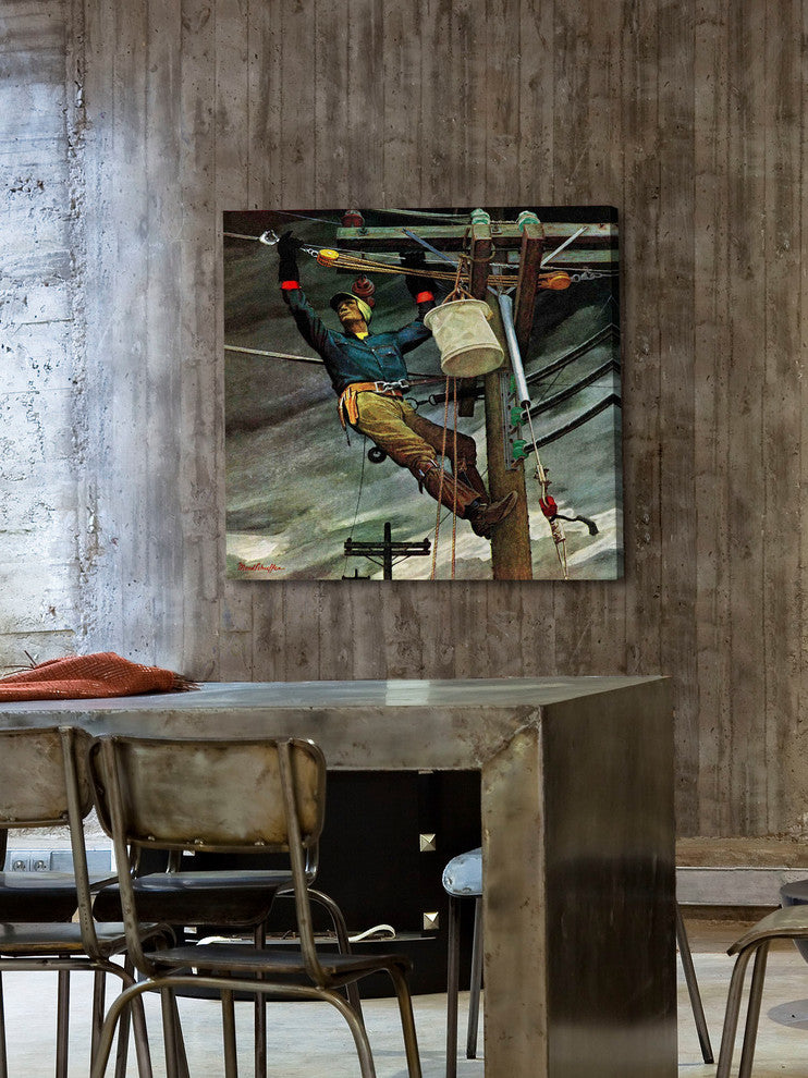 "Telephone Lineman" Painting Print on Canvas by Mead Schaeffer
