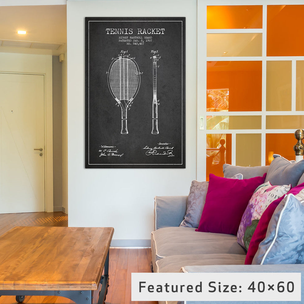 "Tennis Racket Charcoal Patent Blueprint" by Aged Pixel, 40"x26"x1.5"