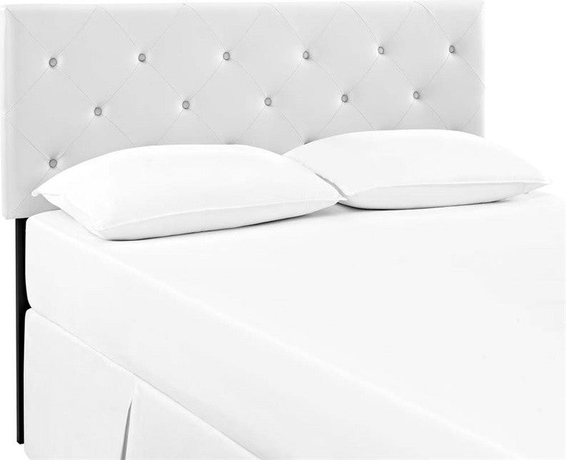 Enhance your decor with the distinguished Terisa Headboard in Vinyl. Magnificently adorned with deep button tufting and a diamond-patterned trim, Terisa comes finely upholstered, has a solid wood frame, adjustable black coated metal legs, and dense foam padding for ultimate support. Rejoice with a contemporary design that exceptionally compliments your bedroom decor. Fully Compatible with Loryn and Tessie Platform Bed Frames.Set Includes:One - Terisa King Headboard Overall Product Dimensions: 3"L x 79.5"W x 47.5"H