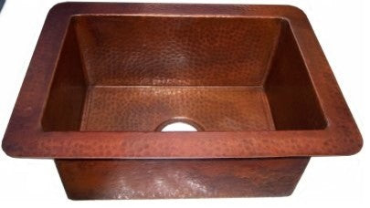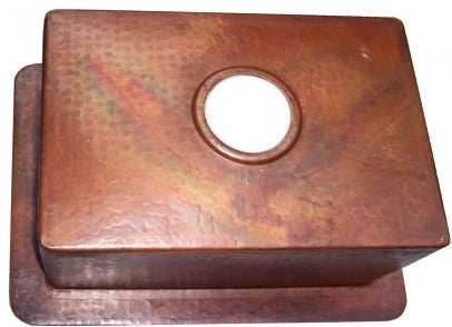 The patina finish in this kitchen copper sink is a smooth light brown, it has a standard 3.75 diameter opening,which fits 3.5" disposer drain assemblies. This model has one single rectangular bowl with inside dimensions of 17" x 11" x 8".The copper sheet is 14 gauge (0.064" thickness). From a copper sheet the wise artisan hands transform it into this unique piece where the hammer footprint is very visible, giving it its own character. The border around the four sides of the sink is 2.5".The techniques used by Santa Clara del Cobre craftsmen is the same one used for several centuries, where no sophisticated tools are used, just the furnace to heat the copper and a hammer to give it the shape. The finish is in a smooth light brown color, a more uniform looking then the antique looking one. Along your home decoration, this piece it will add a unique touch to your kitchen making it a very special point of attraction.This copper sink will not rust or become greenish because the patina will protect it from humidity and oxidation, just keep it as dry as you can to preserve it longer with the current color textures. The patina can be damaged faster if any abrasive substances stay for long periods of time on the sink surface, because of this, washing it after usage is recommended; besides that, no more maintenance is required."Hand-hammered and mold-cut to perfectionHandcrafted by Mexico''s Finest ArtisansWe include 1" long brown screws in all of our hammered copper switch plates