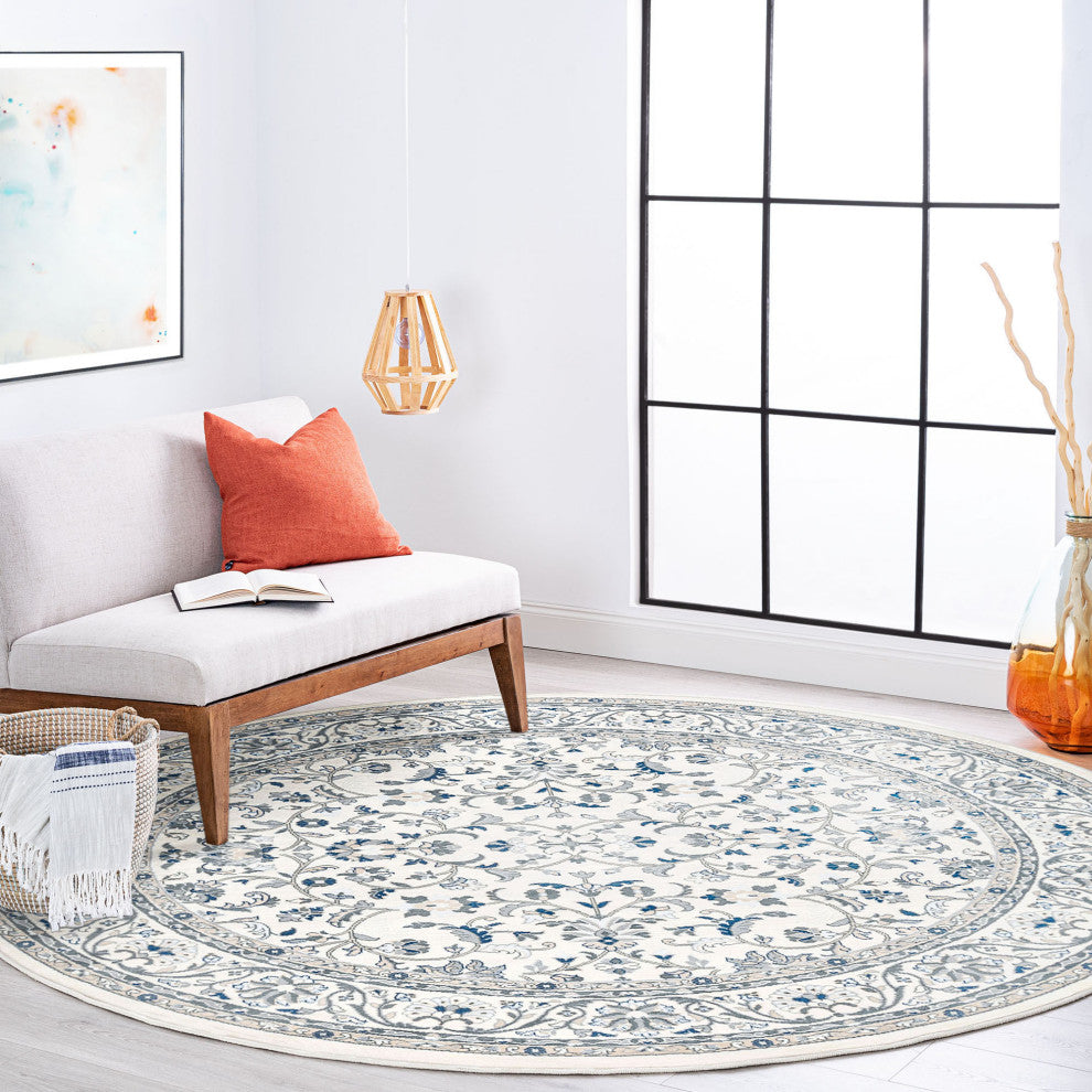 Tessie Traditional Floral Cream Round Area Rug, 5' Round