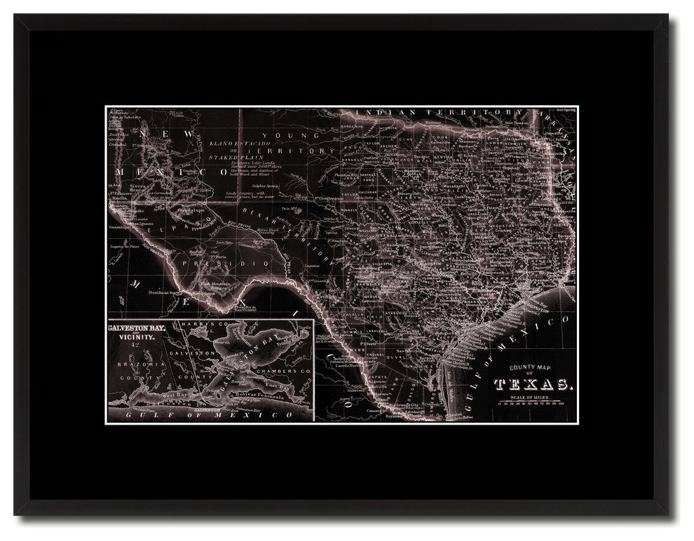 Texas Vintage Vivid Sepia Map Canvas, 16"x21"