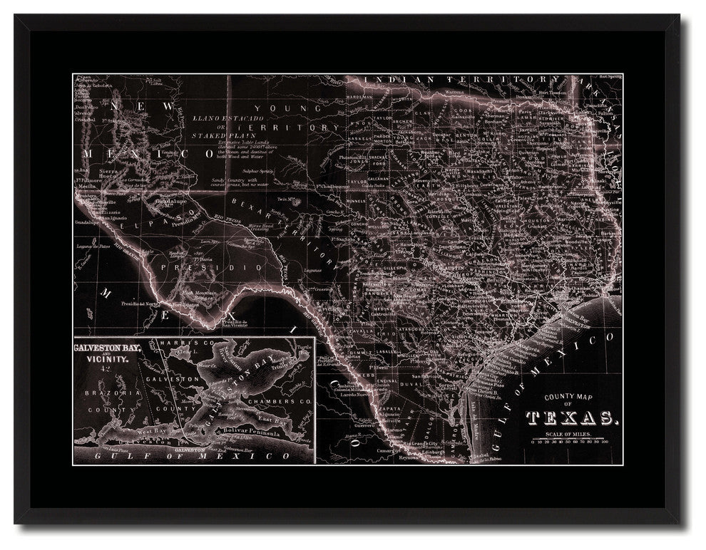 Texas Vintage Vivid Sepia Map Canvas, 28"x37"