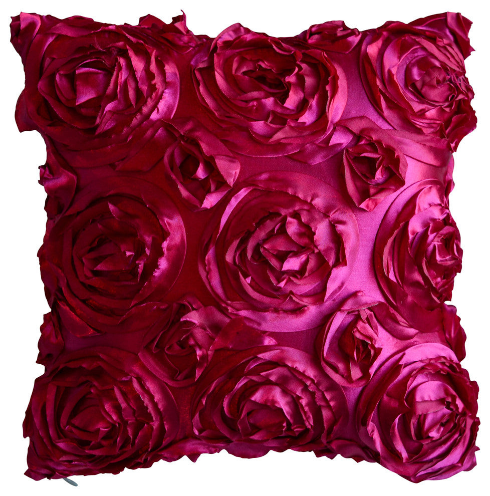 Textured Rose Pillow, Fushia, 18"x18", Without Insert