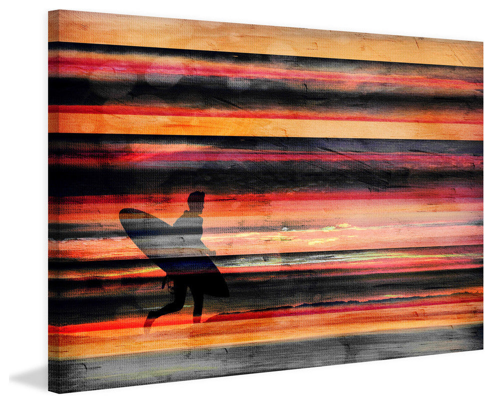 Striking and unique, the "That Last Wave" Print on Canvas by Parvez Taj will bring your walls to life. Printed on canvas, this 18 inch wide by 12 inch tall contemporary artwork will make a statement in any living room, dining room, or bedroom.- Fine art canvas print by Parvez Taj- Professionally hand stretched- Gallery wrapped in sustainable, non-warping wood- Arrives ready to hang- Made in the USA- Includes a certificate of authenticity- Artist signature on the front