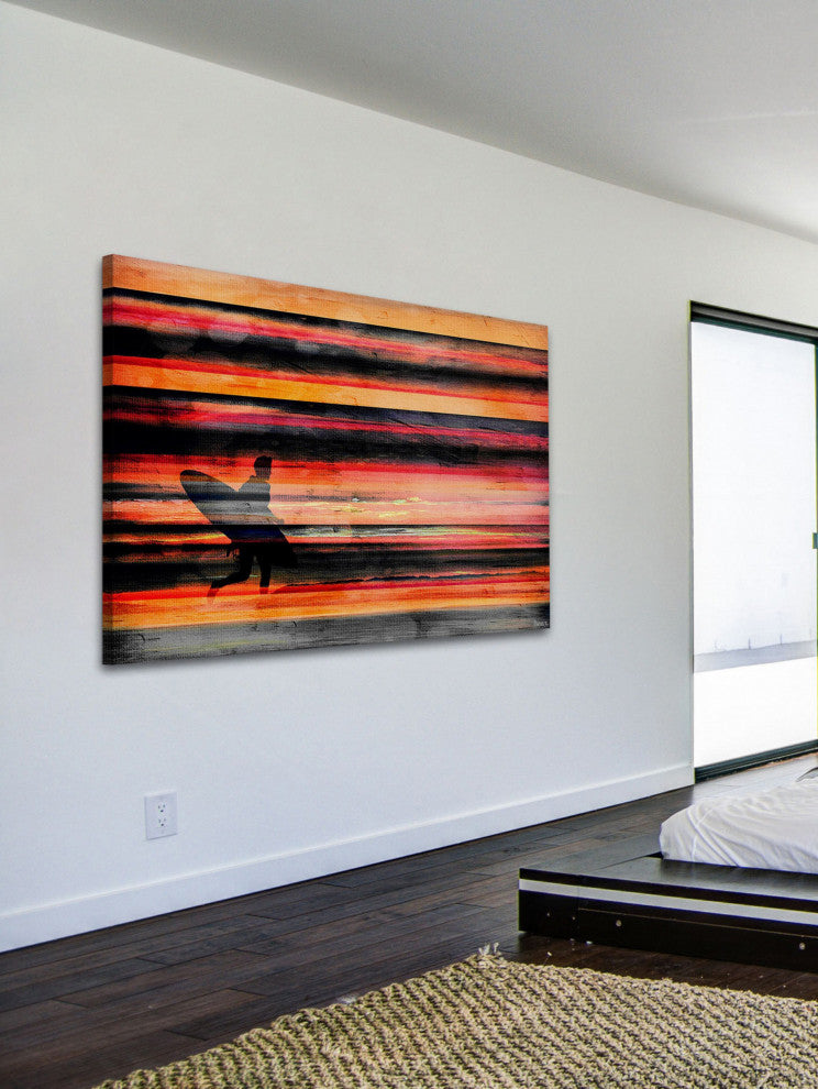 Striking and unique, the "That Last Wave" Print on Canvas by Parvez Taj will bring your walls to life. Printed on canvas, this 60 inch wide by 40 inch tall contemporary artwork will make a statement in any living room, dining room, or bedroom.- Fine art canvas print by Parvez Taj- Professionally hand stretched- Gallery wrapped in sustainable, non-warping wood- Arrives ready to hang- Made in the USA- Includes a certificate of authenticity- Artist signature on the front