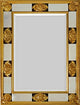 A simple and unique frame mirror, finished in gold and silver with black accents behind the unusual rosettes. It can be used with traditional or contemporary decor.