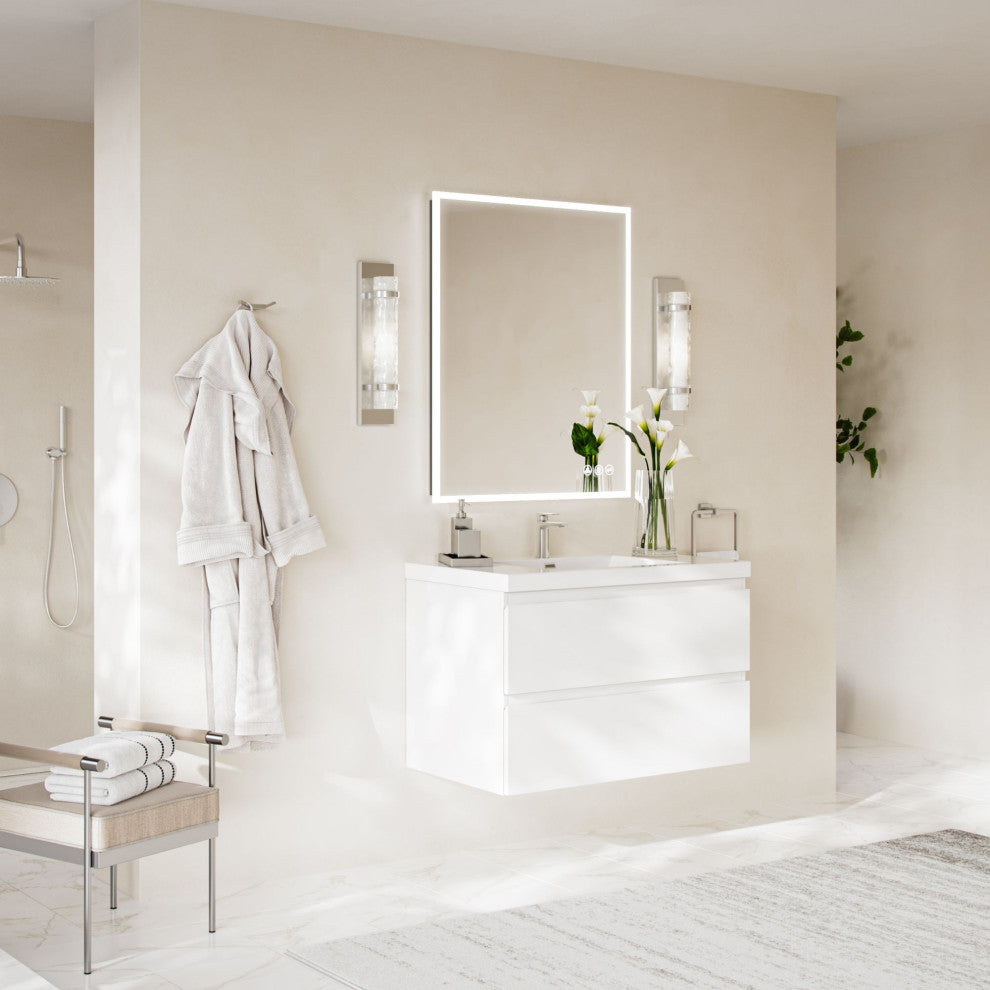 The Beacon Bathroom Vanity, Single Sink, 36", High Gloss White, Wall Mounted
