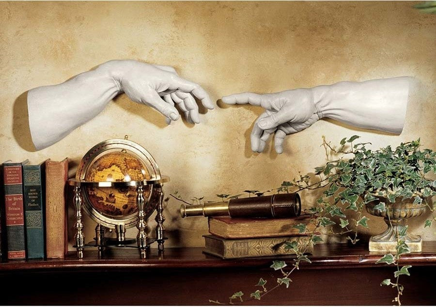 Capturing the drama of the original Sistine Chapel fresco depicting the moment God gives life to man, these impressively large-scale, three-dimensional wall sculptures possess a sense of the majesty of creation. Cast in quality designer resin with an ancient stone finish, our exclusive wall sculptures bring one of the world''s most famous dramatic images into your home or gallery. Each approx.: 16.5"Wx3"Dx6.5"H. 4 lbs.
