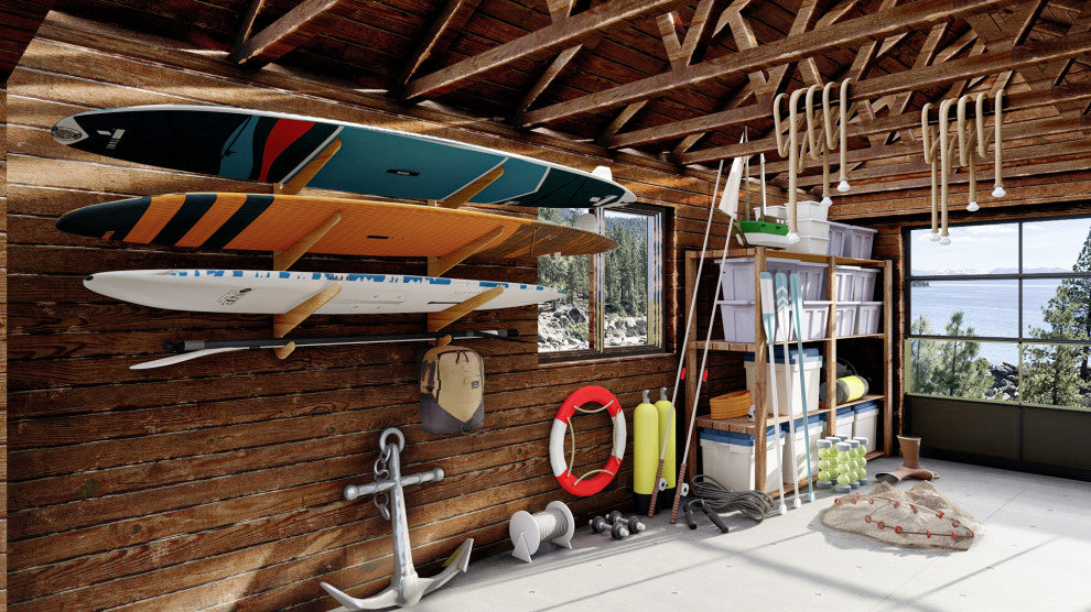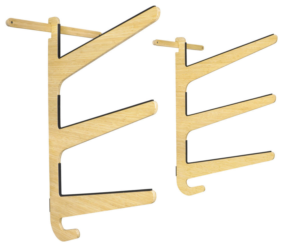 The O''ahu is a big honkin'' rack. Designed for SUP and Longboard display and storage, it makes use of bamboo''s natural strength holding 3 SUPs or Longboards, no problem. The O''ahu is perfect for the SUPer/surfer who has multiple boards of multiple sizes... display and store anything from 3 large SUPs to a SUP and two short boards. Make use of the bottom hooks to conveniently organize paddles, wetsuits, helmets, etc.Made from strong, gorgeous 1/2" bamboo.Holds up to 150 lbs.Grassracks'' Easy installation Mounting SystemAdjustable/Interchangeable with other Grassracks productsMade in USAEco-FriendlyPieces Included: 2 Cradles, 1 Mounting Bar, 1 Hardware PackageProduct Care: Treat as normal finished wood product. Keep away from humid conditions and extreme temperatures. If the product is exposed to moisture, wipe dry immediately.Product Warranty: 2 Year Warranty