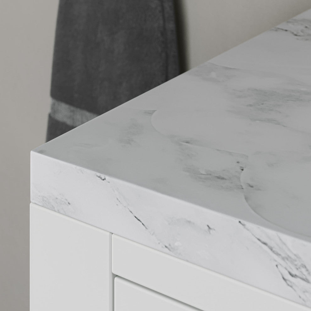 72 Inch Pure White Double Sink Bathroom Vanity With Matching Framed Mirror And FaucetThe Polaris double sink bathroom vanity will add a level of sophistication and class to any bathroom''s decor. The crossroads of timeless design and innovative modern manufacturing processes merge harmoniously to ensure each vanity''s finishes and function are as reliable as their unmistakable beauty. Constructed of 100% hardwood and not particle board, this high-class vanity that is designed to last a lifetime. The marble countertop, ceramic sinks, and elegantly crafted doors and drawers all lend credence to the durability and superior craftsmanship. With the understanding that no one space is alike, this design comes in multiple lengths to accommodate any room size. Material: Made from select hardwoods that have been kiln dried to ensure a stable product that will not expand, contract, or warp.Construction: Using joinery techniques that are made to hold together for a lifetime, all Vanity come fully assembled and include interior shelving and a large cut out in the back for plumbing access.Countertop: Comes with solid natural stone countertops that have been sealed at the factory to prevent staining and watermarks. Countertops are pre-drilled for a standard 8" widespread 3 hole lavatory faucet. The backsplash is included. It is optional to attach the backsplash onto the vanity top.Sinks: Two undermount rectangular shaped ceramic sinks included.Finish: The multi-step finish process on the Vanity is not only rich with color and pleasing to the eye, it is also a very durable; acting as an outer shell to help protect your vanity from wear and damage that may occur in everyday use. Actual color may vary slightly due to different computer monitor display settings.Metal hardware in chrome finish with solid hardwood construction cabinet, under cabinet linen rack designTwo rectangular undermount ceramic lavatory sinks with overflow includedSoft closing doors for a smooth and silent closeFive piece door constructionMetal hardware in chrome finish with solid hardwood construction cabinet, under cabinet linen rack designTwo rectangular undermount ceramic lavatory sinks with overflow includedSoft closing doors for a smooth and silent closeFive piece door construction1" thick carrara white pre-drilled 8" widespread faucet hole countertop, 1 piece, seamlessFor the MADISON bathroom vanity collection, a matching wall cabinet is available under SKU: MADISON-TT-W.For the MADISON bathroom vanity collection, a matching free standing linen cabinet is available under SKU: MADISON-LC-W.