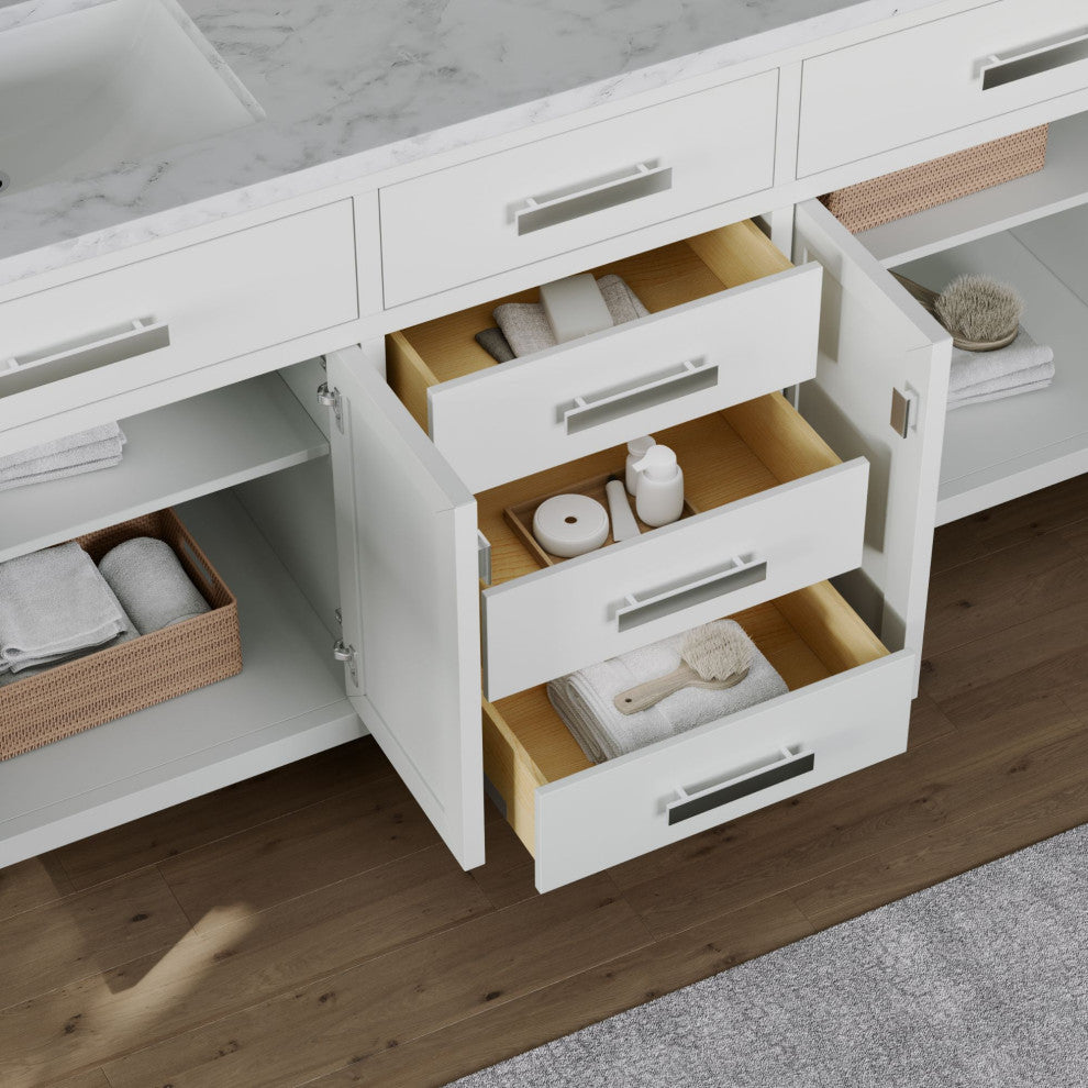 The Polaris Bathroom Vanity, Pure White, 72", Double Sink, Freestanding, With Mirror