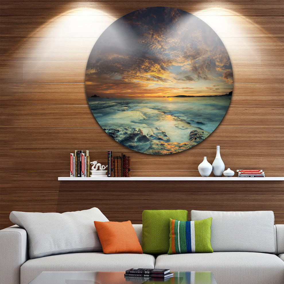 Bring Contemporary Abstraction to your home with this large Circle Metal wall art. This The Tanah Lot Temple In Bali Island Metal Artwork makes it the focal point of any room or office.
