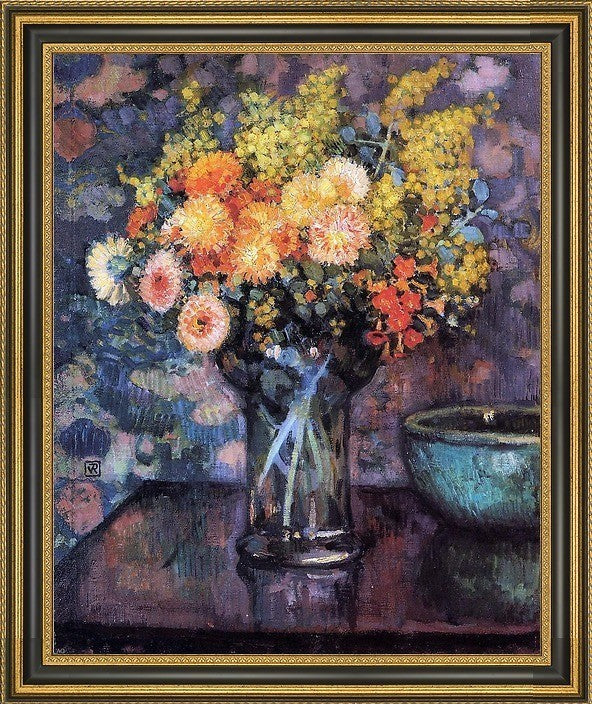 16" x 20" Theo Van Rysselberghe Vase of Flowers framed premium canvas print reproduced to meet museum quality standards. Our Museum quality canvas prints are produced using high-precision print technology for a more accurate reproduction printed on high quality canvas with fade-resistant, archival inks. Our progressive business model allows us to offer works of art to you at the best wholesale pricing, significantly less than art gallery prices, affordable to all. This artwork is hand stretched onto wooden stretcher bars, then mounted into our 3 3/4" wide gold finish frame with black panel by one of our expert framers. Our framed canvas print comes with hardware, ready to hang on your wall. We present a comprehensive collection of exceptional canvas art reproductions by Theo Van Rysselberghe.