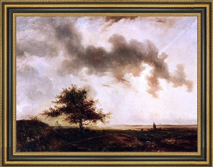 21" x 28" Theodore Rousseau Figures in a Landscape framed premium canvas print reproduced to meet museum quality standards. Our Museum quality canvas prints are produced using high-precision print technology for a more accurate reproduction printed on high quality canvas with fade-resistant, archival inks. Our progressive business model allows us to offer works of art to you at the best wholesale pricing, significantly less than art gallery prices, affordable to all. This artwork is hand stretched onto wooden stretcher bars, then mounted into our 3 3/4" wide gold finish frame with black panel by one of our expert framers. Our framed canvas print comes with hardware, ready to hang on your wall. We present a comprehensive collection of exceptional canvas art reproductions by Theodore Rousseau.