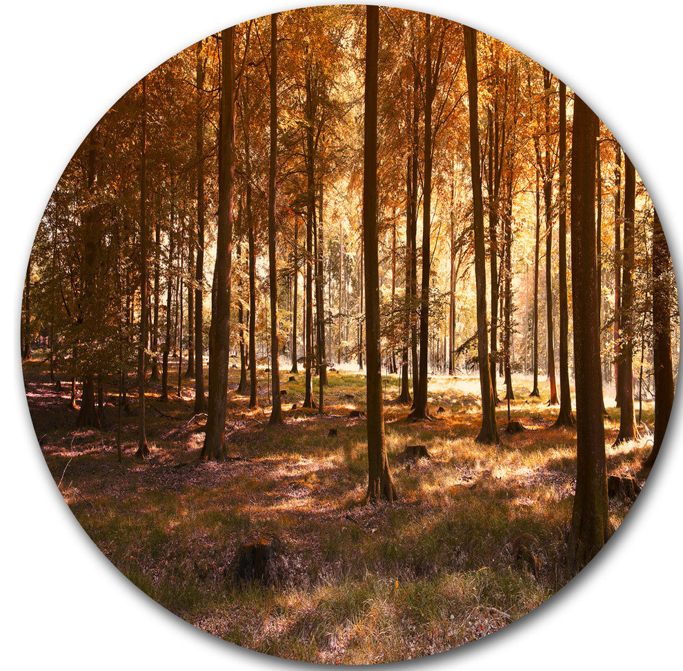 Thick Fall Forest With Orange Leaves, Photo Round Metal Wall Art, 36"