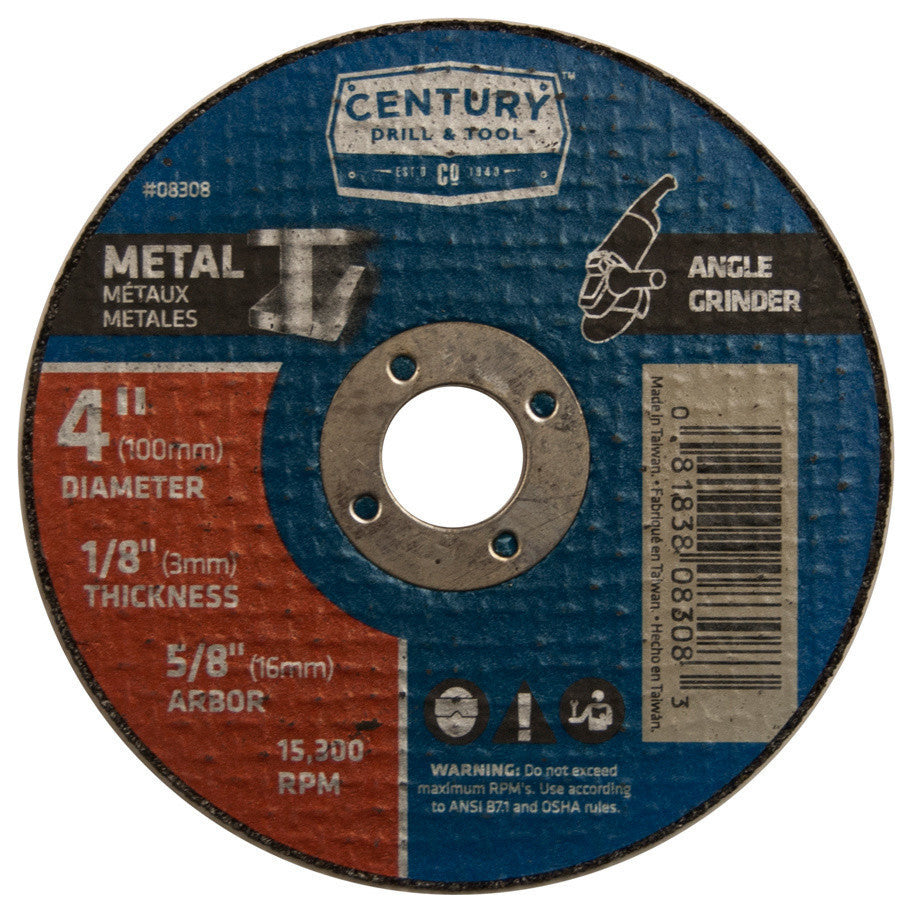 Cutting Wheel Metal Type 1A (Thin Metal Cutting) 4" Diameter, 1/8" Thickness. 5/8" Arbor. Safe Maximum Rpm 15,300 Spec. A24R.