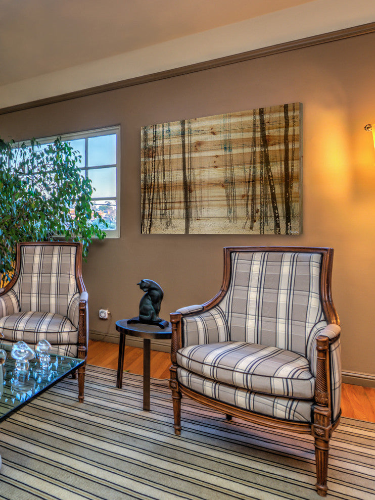 "Thin Trees" Painting Print on Natural Pine Wood, 60"x40"