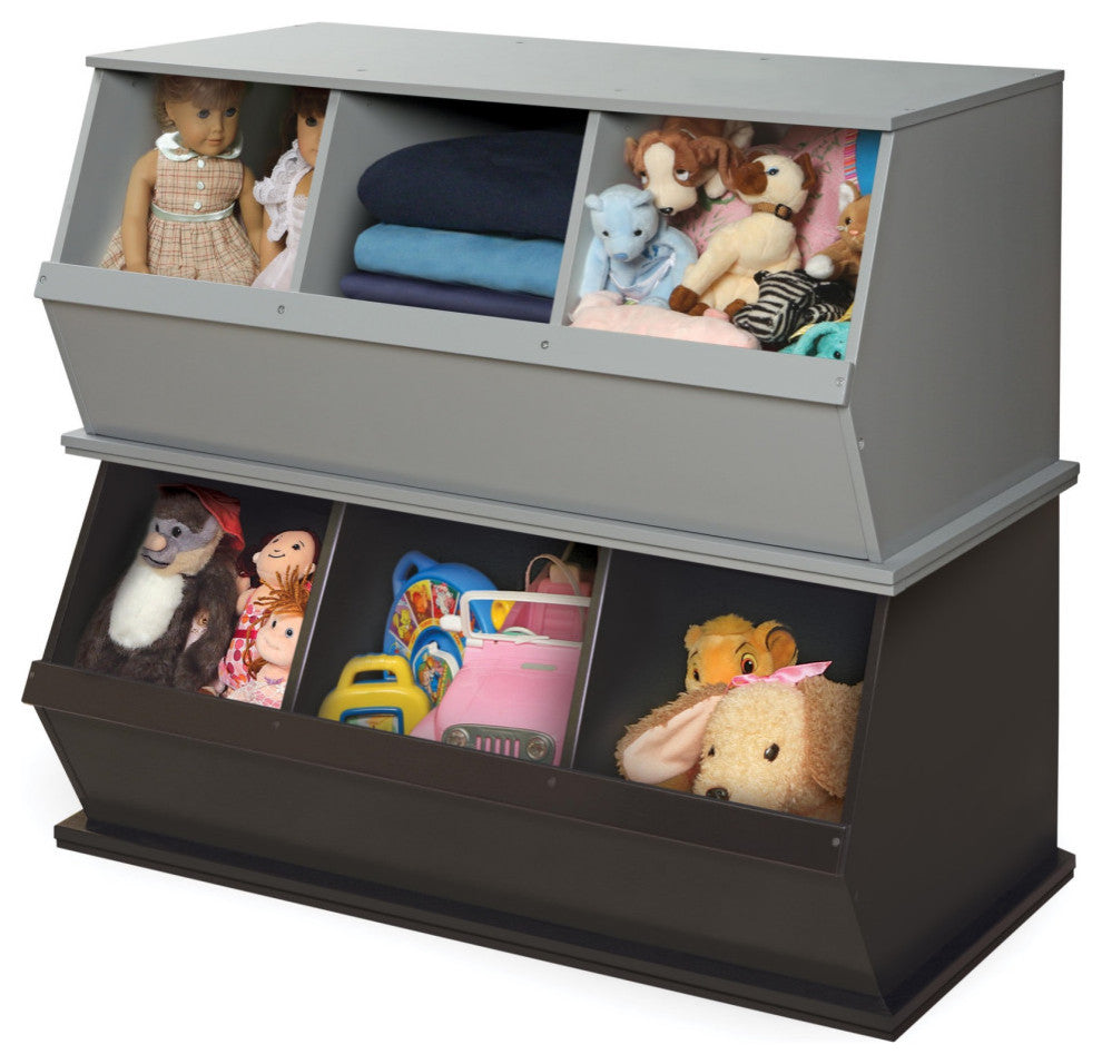 Three Bin Storage Cubby - Espresso''09777 Three Bin Storage Cubby - Espresso Badger Baskets Three Bin Stackable Storage Cubby/Bin is a sturdy, modular storage solution for keeping all sorts of items tidy. Features three generously sized open bins that can be stacked with other bins to expand your storage capacity (each bin uni