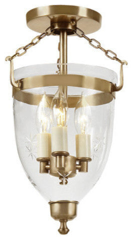 Three Light Danbury Bell Glass Lantern Star Glass, Rubbed Brass