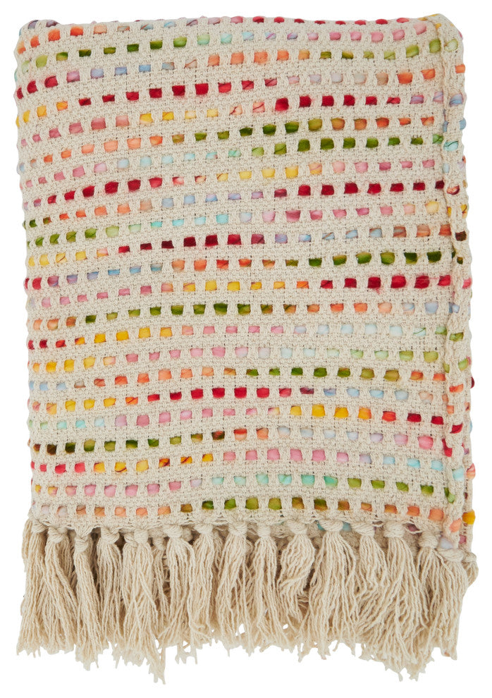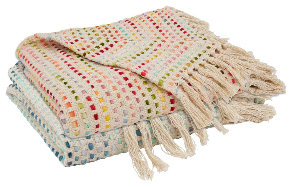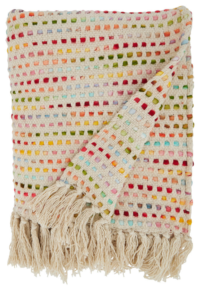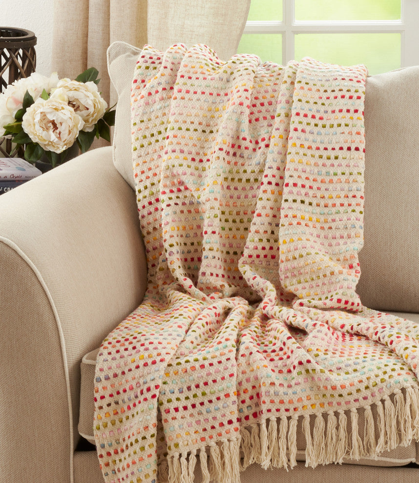 The Confetti Design Throw Blanket features a woven design that brings texture and dimension to your home and decor. It''s great for both indoor and outdoor use to keep you cozy all year round. The ends are finished with tasseled edges to complete the look.